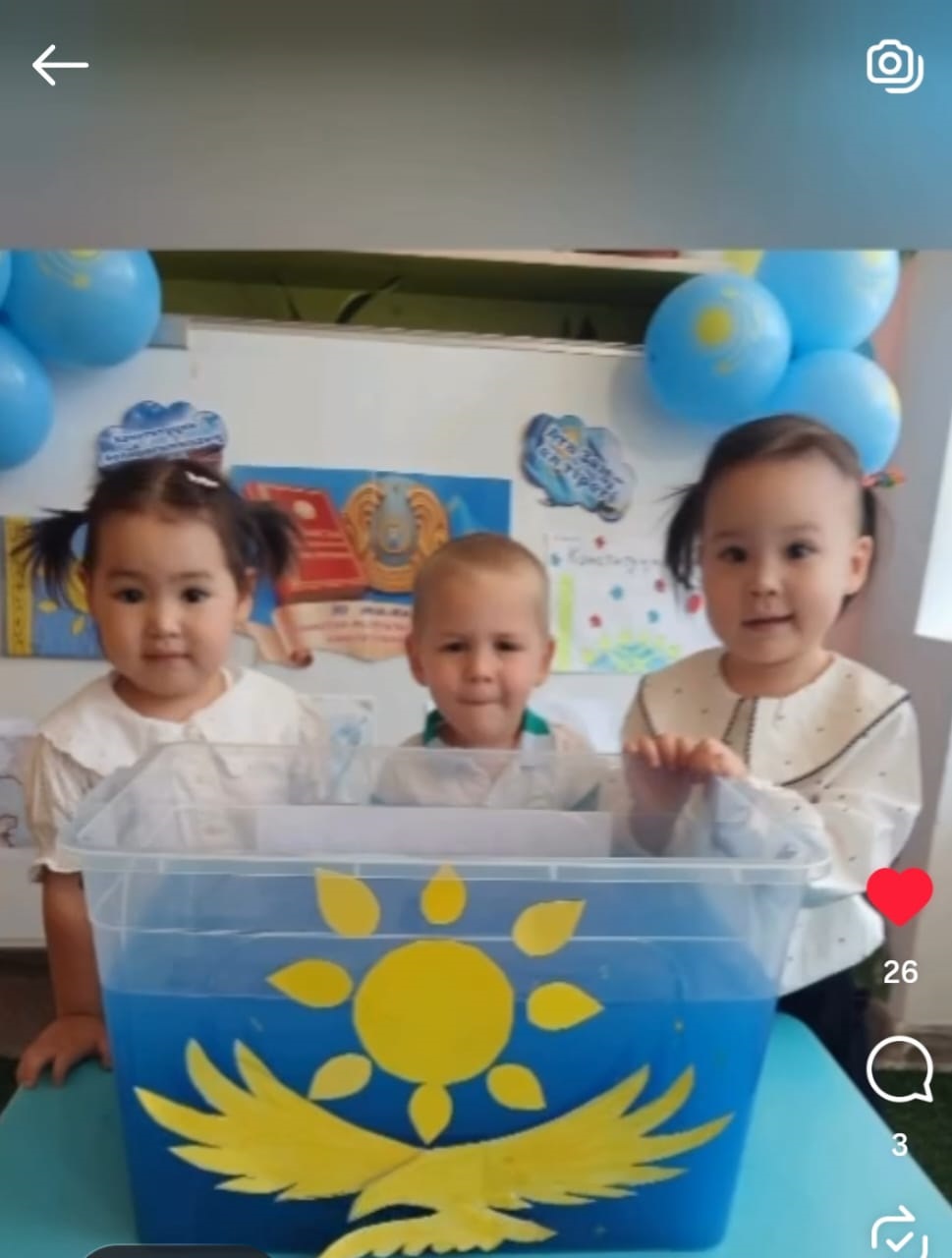 ГККП "Ясли сад №114" » Біз туралы » Балалар жұмысы » "Құлыншақ" тобы. Мақсаты: Балалардың Отаны, Рәміздері, Елбасы, Тәуелсіздік күні туралы түсініктерін молайту, отанына деген сүйіспеншіліктерін арттыру. Отанын, елін сүюге тәрбиелеу.