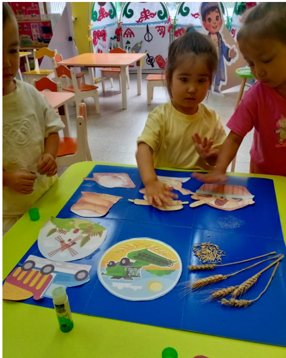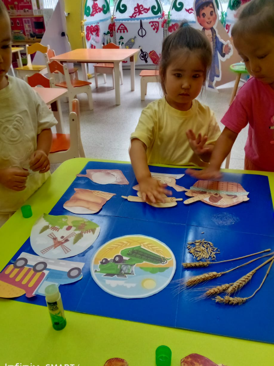 ГККП "Ясли сад №114" » Ертеңгіліктер » "Хлеб всему голова". Аппликация коллективная работа. Формировать у детей умение к нетрадиционном методом. Средняя группа "Күншуақ' Воспитатель Гуламова А А