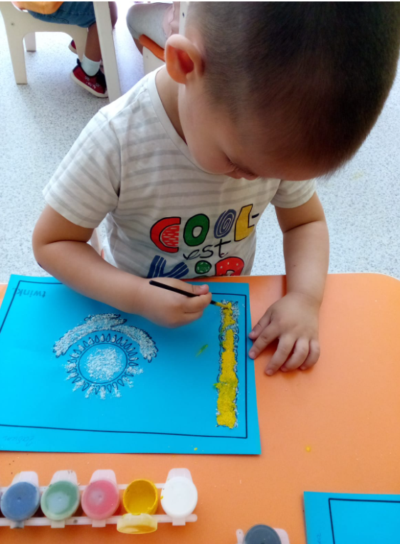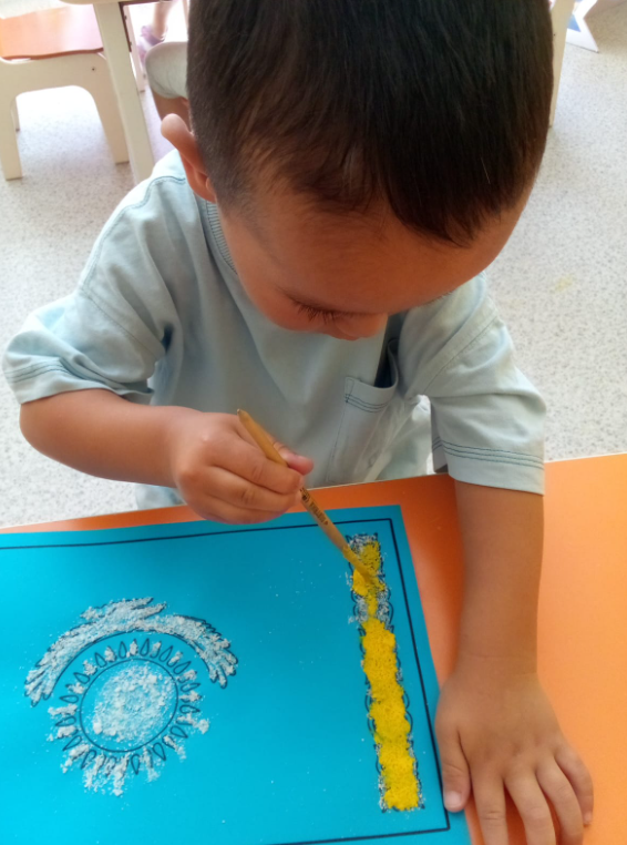 Рисование с солью в средней группе " Күншуақ" Воспитатель Гуламова А.А » ГККП "Ясли сад №114"
